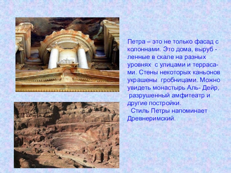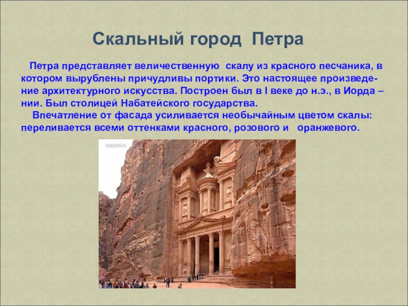 ние архитектурного искусства. Построен был в I веке до н.э., в Иорда –нии. Был столицей Набатейского государства.