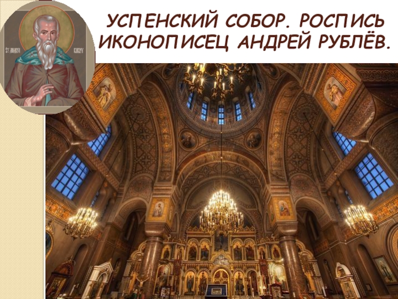 Слайд 16Успенский собор. Роспись Иконописец Андрей Рублёв.