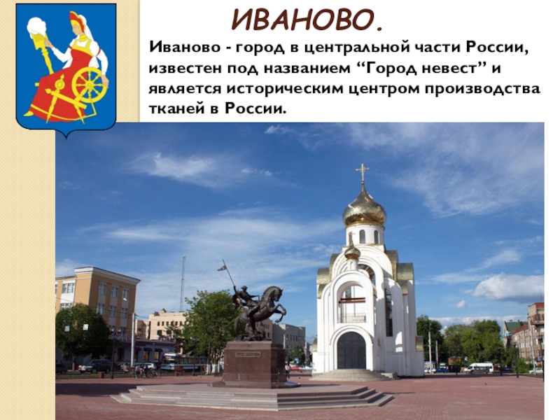 Иваново. Иваново - город в центральной части России, известен под названием “Город невест” и является историческим