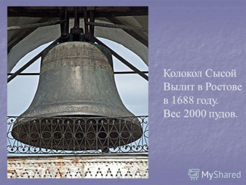 Слайд 7Самый тяжелый колокол «Сысой» весит 2 000 пудов (32 тонны, как