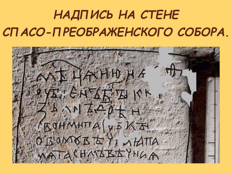 Слайд 66Надпись на стене Спасо-Преображенского собора.