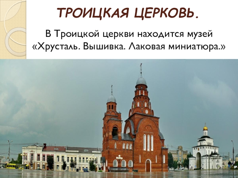 ТРОИЦКАЯ ЦЕРКОВЬ. В Троицкой церкви находится музей «Хрусталь. Вышивка. Лаковая миниатюра.»