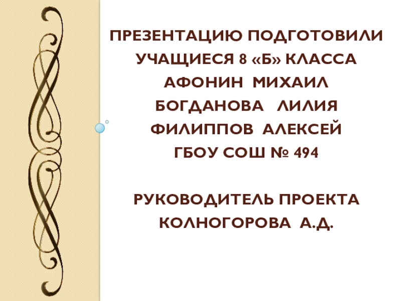 Презентацию подготовили учащиеся 8 «Б» класса Афонин Михаил Богданова  Лилия Филиппов Алексей ГБОУ Сош № 494