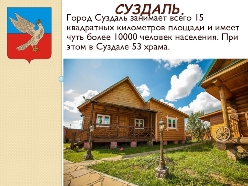 СУЗДАЛЬ.Город Суздаль занимает всего 15 квадратных километров площади и имеет чуть более 10000 человек населения. При этом