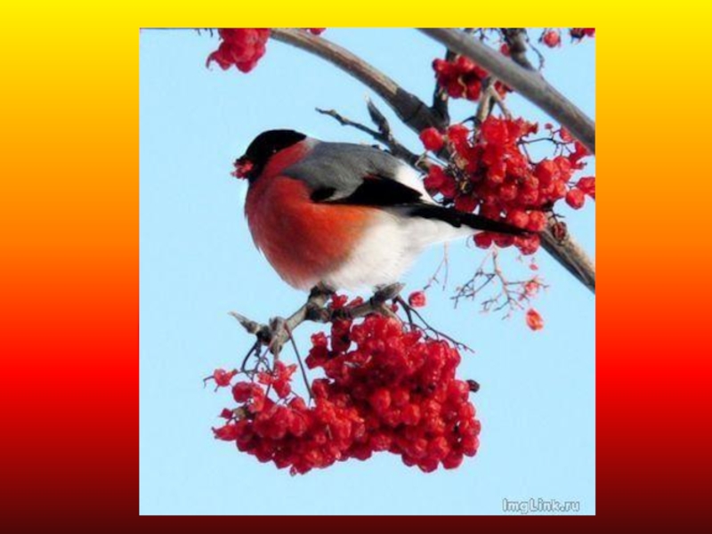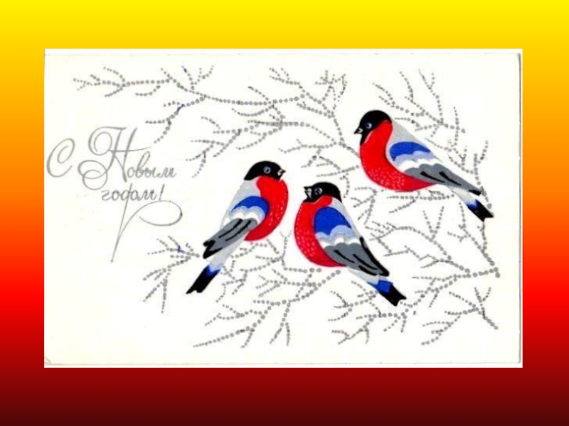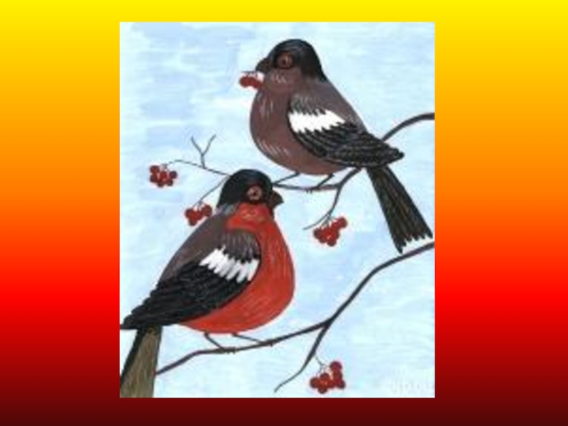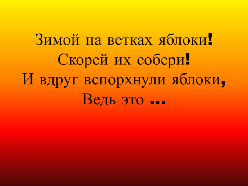 Слайд 1Зимой на ветках яблоки! Скорей их собери! И вдруг вспорхнули яблоки, Ведь это ...