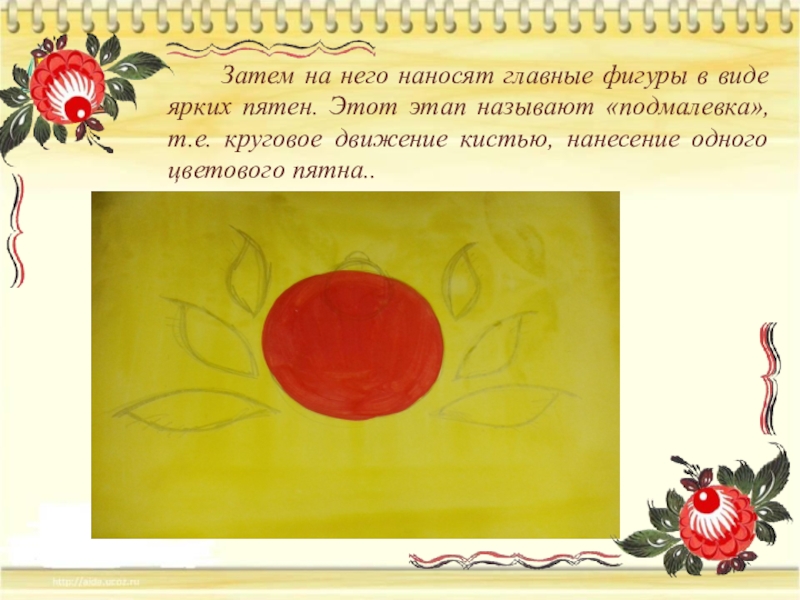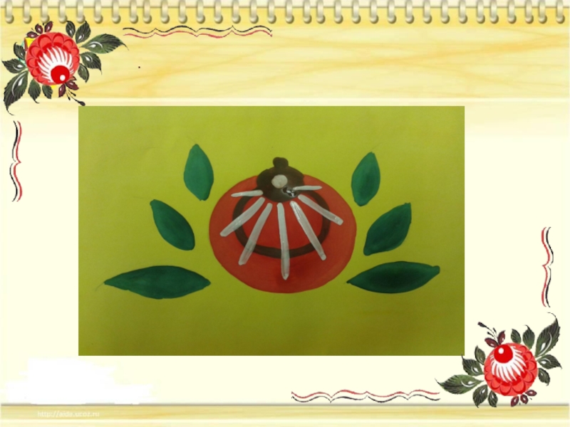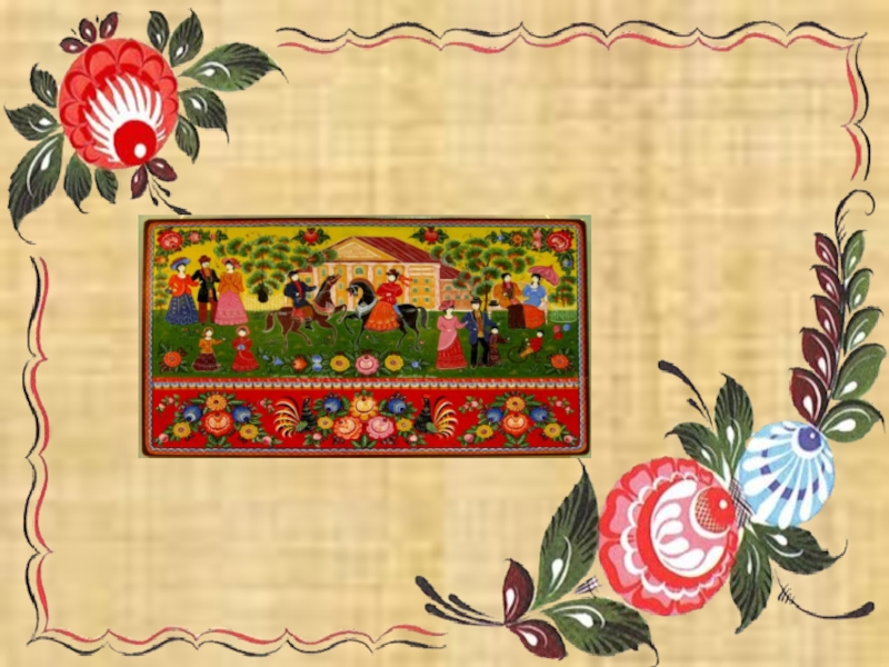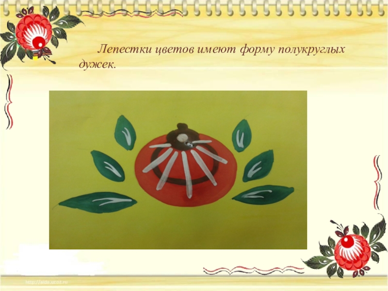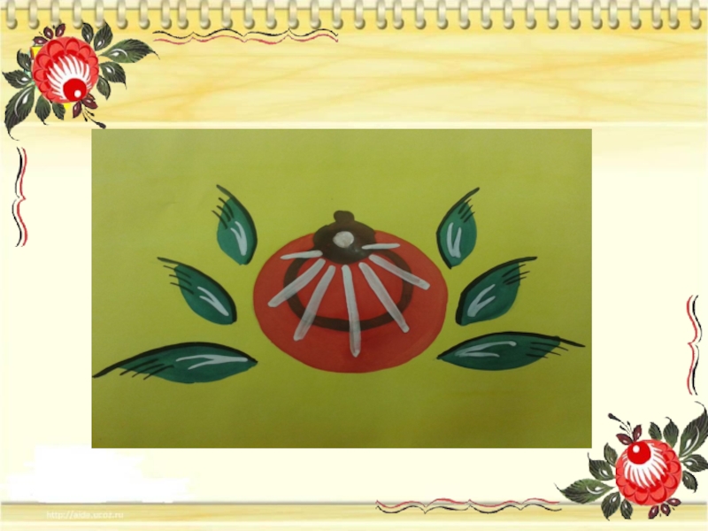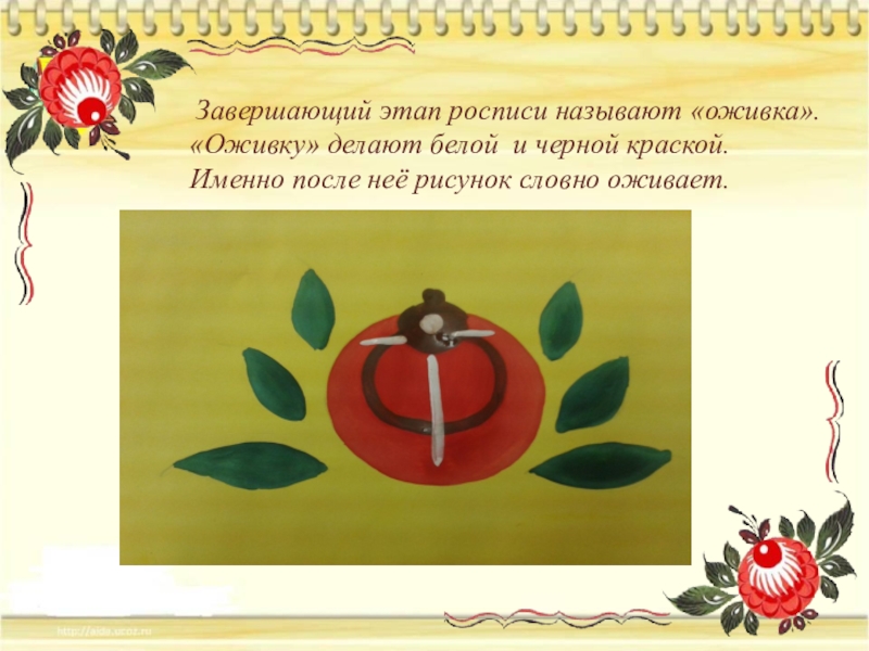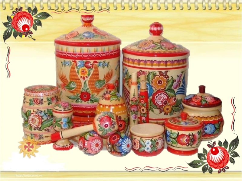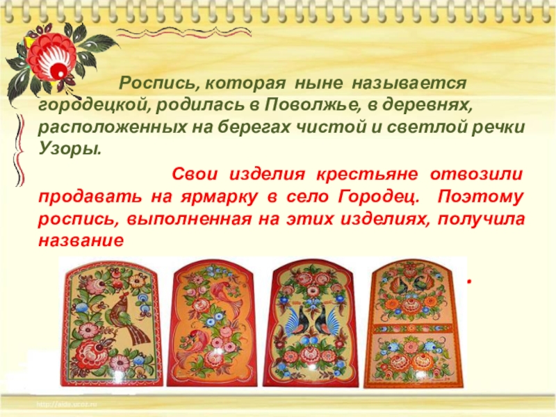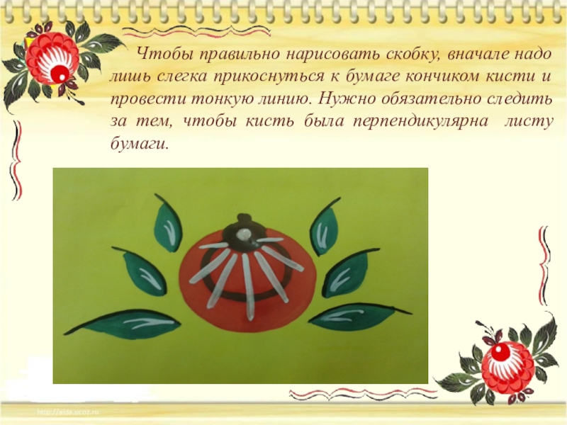 Основные элементы Городецкой росписи — это круги, скобки, точки, капли, дуги, штрихи, спирали.