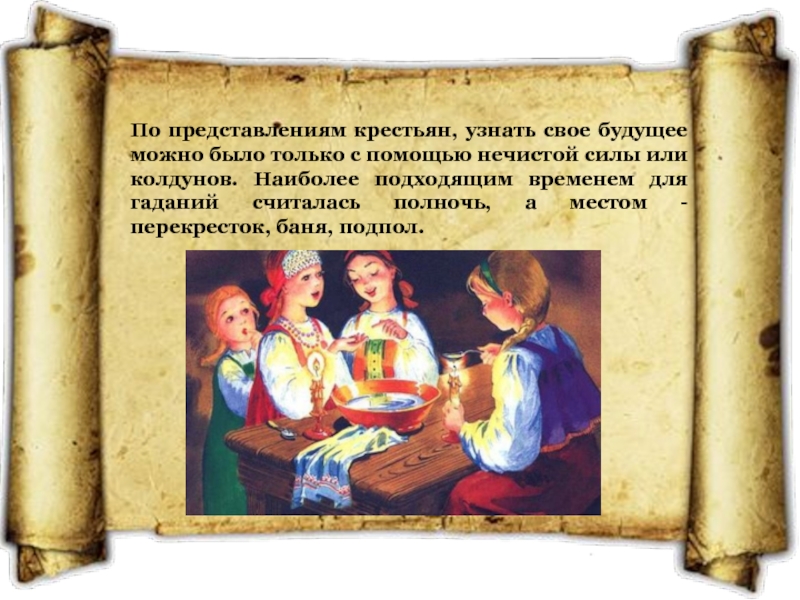 Слайд 19По представлениям крестьян, узнать свое будущее можно было только с помощью