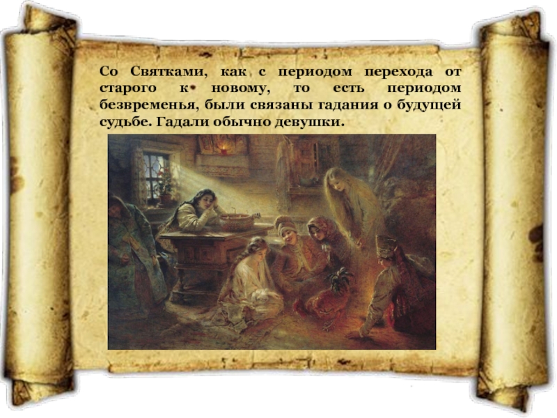 Слайд 18Со Святками, как с периодом перехода от старого к новому, то