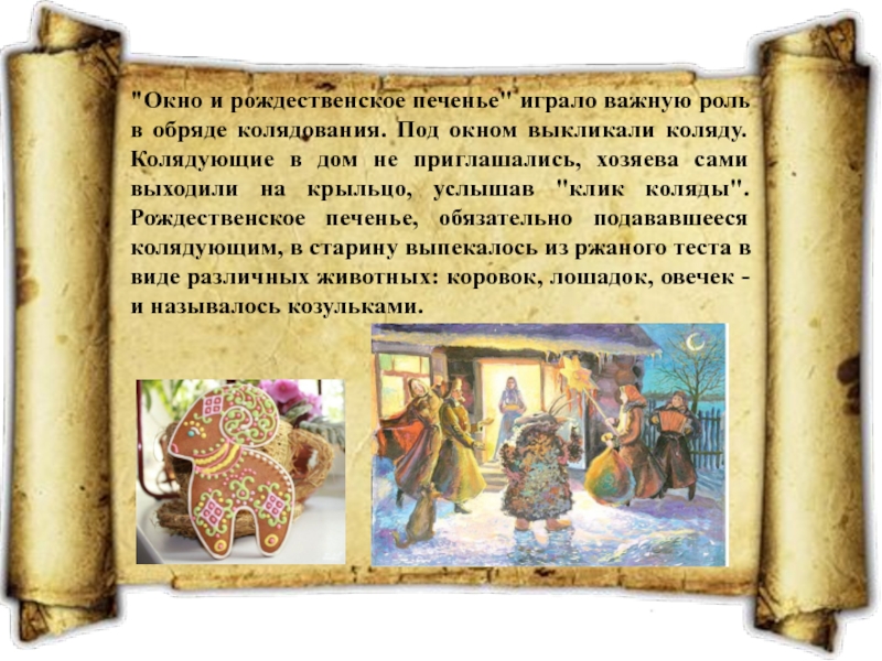 Слайд 14"Окно и рождественское печенье" играло важную роль в обряде колядования. Под