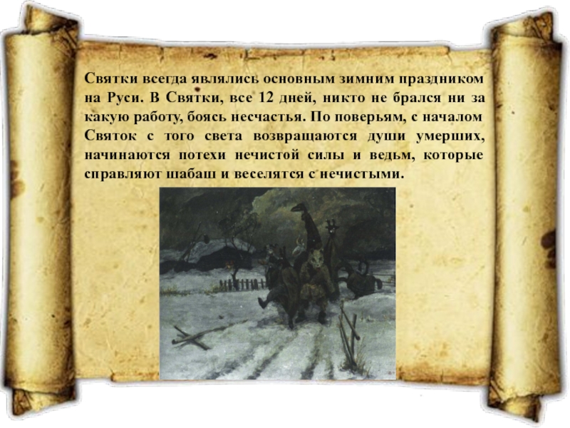Слайд 11Святки всегда являлись основным зимним праздником на Руси. В Святки, все