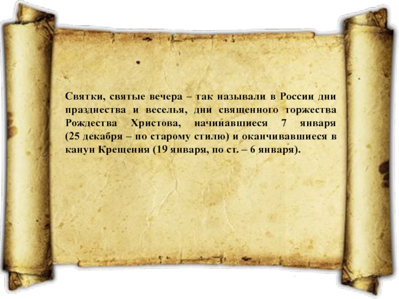 Слайд 9Святки, святые вечера – так называли в России дни празднества и