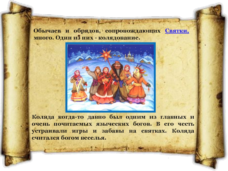 Слайд 20Обычаев и обрядов, сопровождающих Святки, много. Один из них - колядование.