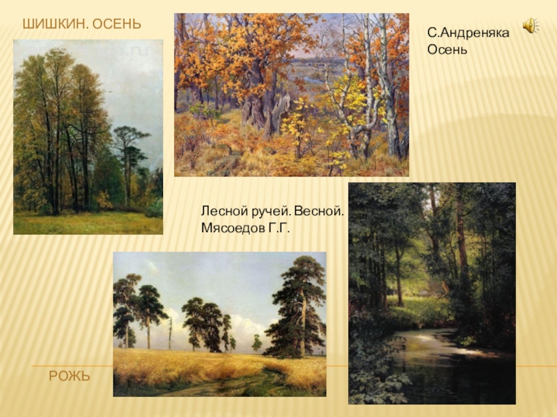 Шишкин. ОсеньРожьС.Андреняка ОсеньЛесной ручей. Весной. Мясоедов Г.Г.