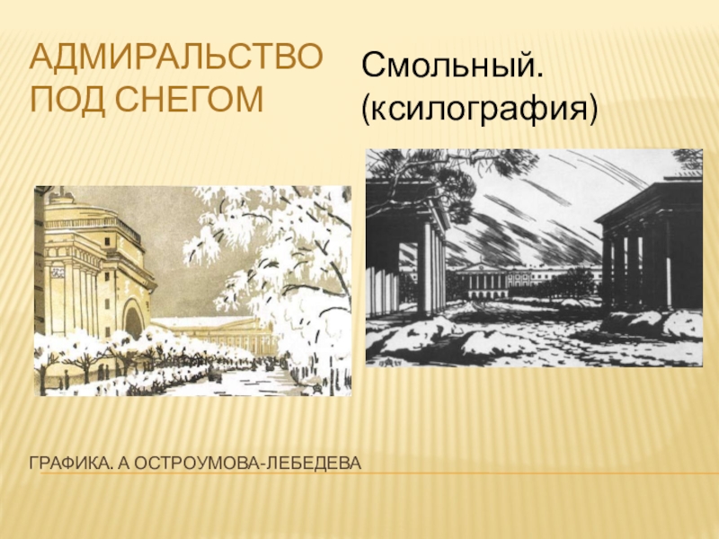 Графика. А Остроумова-ЛебедеваАдмиральство под снегомСмольный (ксилография)Смольный. (ксилография)