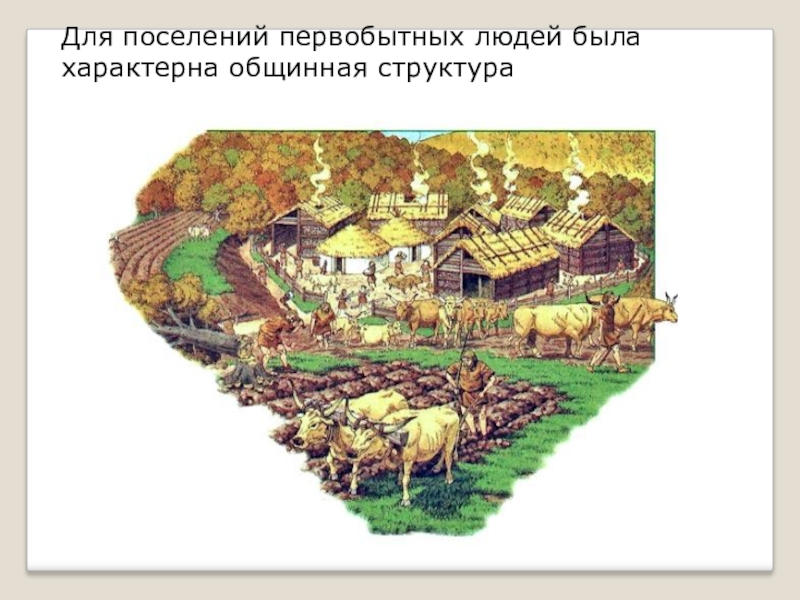 Слайд 3Для поселений первобытных людей была характерна общинная структура