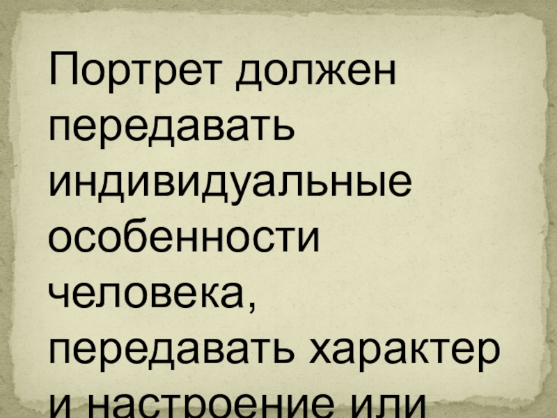 Слайд 2Портрет должен передавать индивидуальные особенности человека, передавать характер и настроение