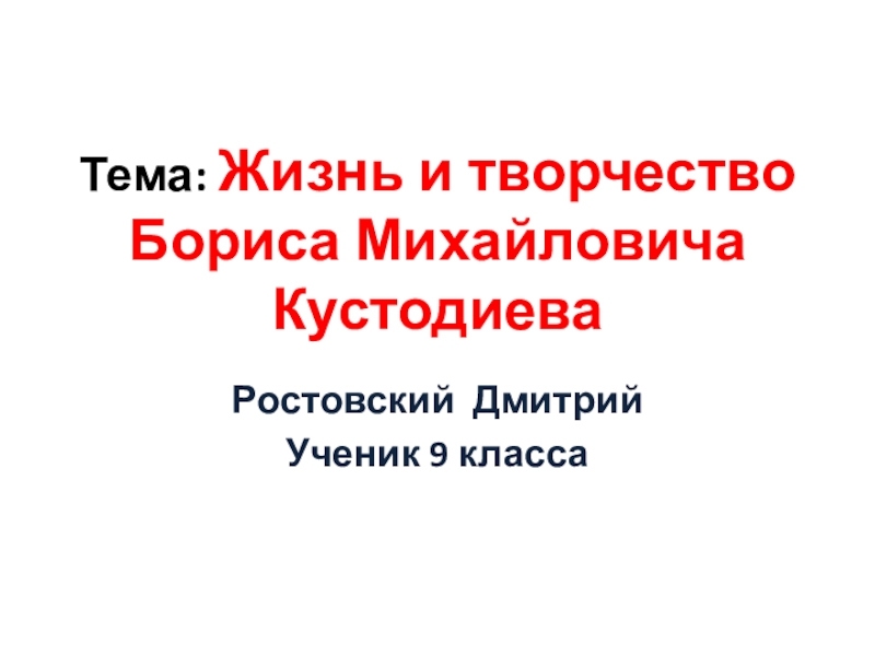 Тема: Жизнь и творчество Бориса Михайловича Кустодиева Ростовский Дмитрий Ученик 9 класса