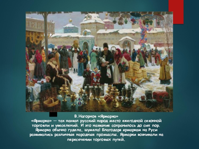 В.Нагорнов «Ярмарка» «Ярмарка» — так назвал русский народ место ежегодной сезонной торговли