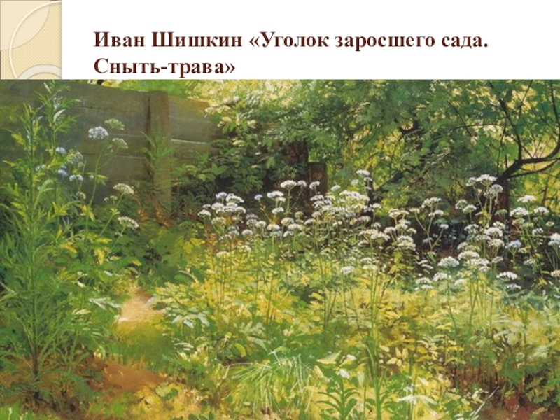 Слайд 9Иван Шишкин «Уголок заросшего сада.