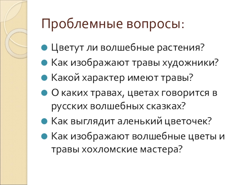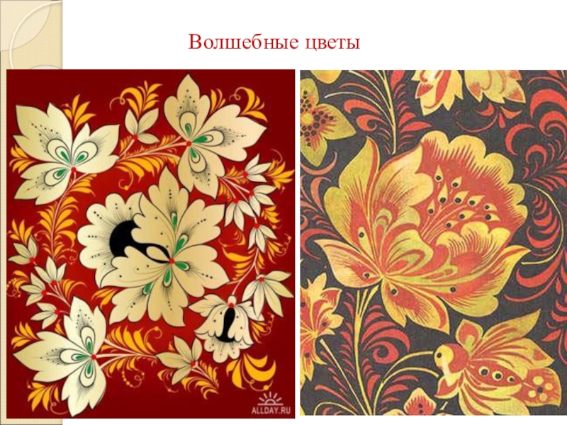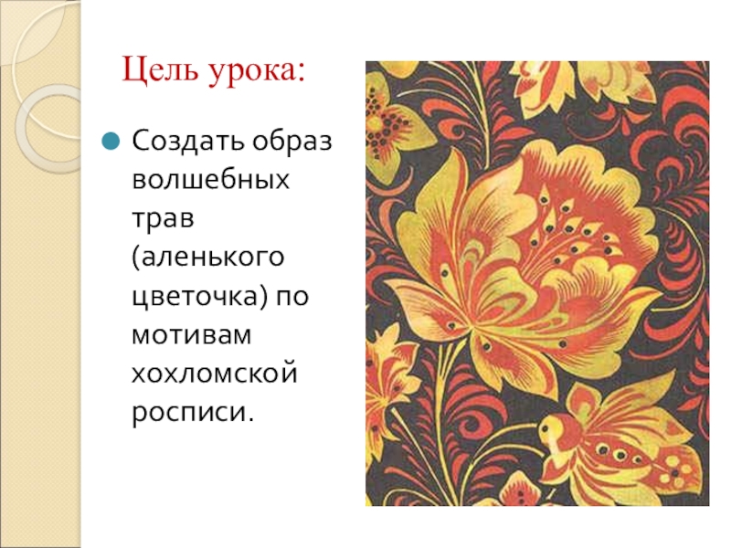 Создать образ волшебных трав (аленького цветочка) по мотивам хохломской росписи.