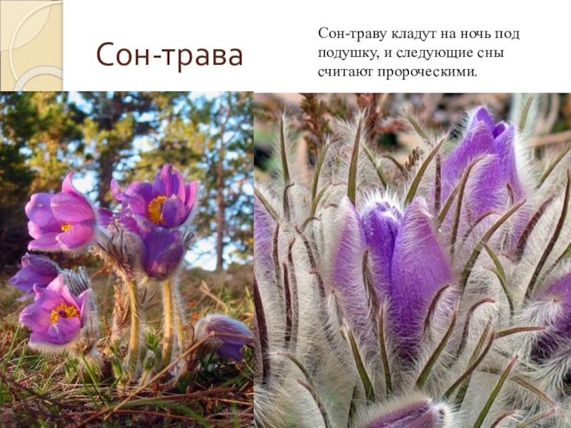 Сон-траву кладут на ночь под подушку, и следующие сны считают пророческими.