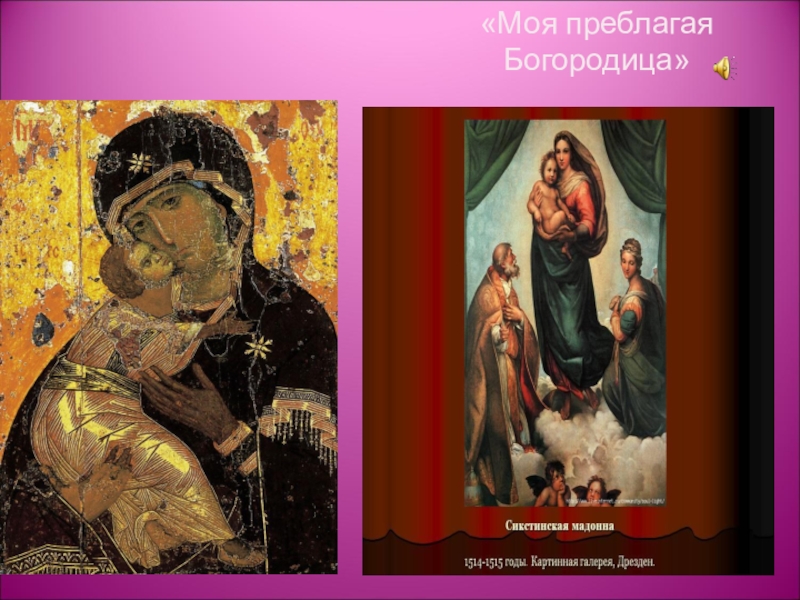 В первом случае человек предстоит перед образом Богородицы, Которая обожествлена, прославлена выше чинов ангельских, а во втором – созерцает лишь земную миловидную молодую женщину с младенцем, хотя некоторые элементы иконографии присутствуют в этом произведении, например – нимбы.