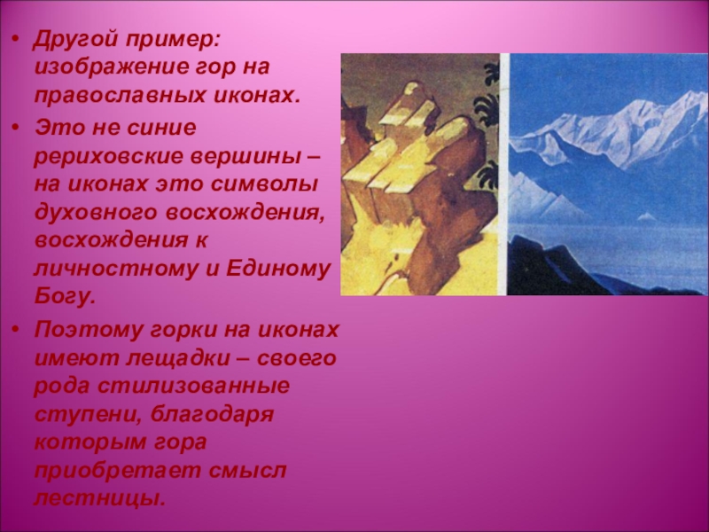 Слайд 17Другой пример: изображение гор на православных иконах.