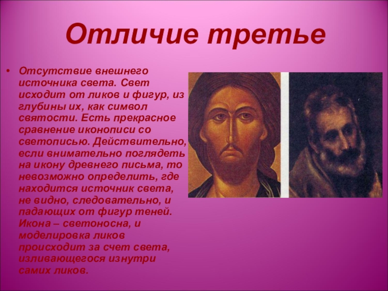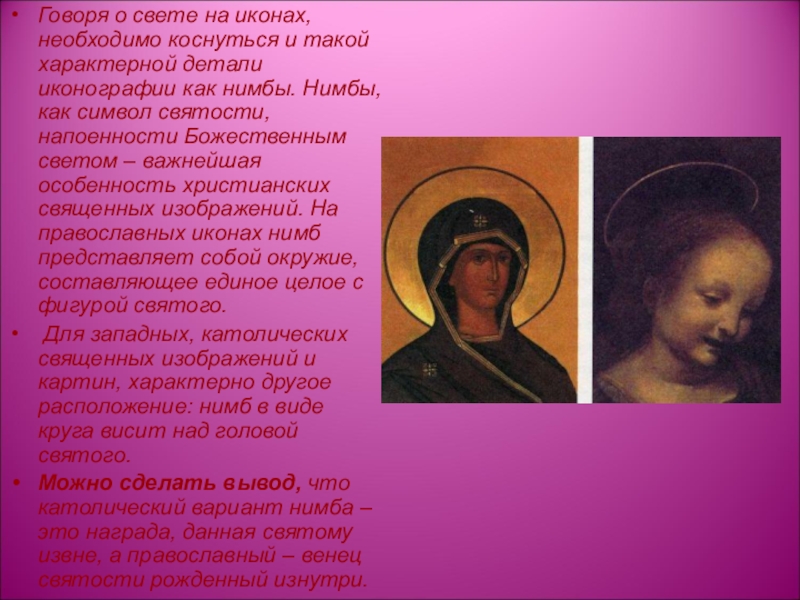 Слайд 22Говоря о свете на иконах, необходимо коснуться и такой характерной детали