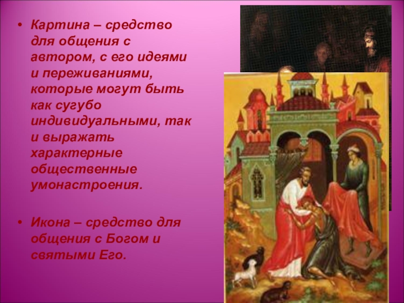 Слайд 13Картина – средство для общения с автором, с его идеями и