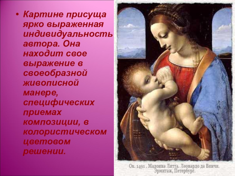 Слайд 10Картине присуща ярко выраженная индивидуальность автора. Она находит свое выражение в