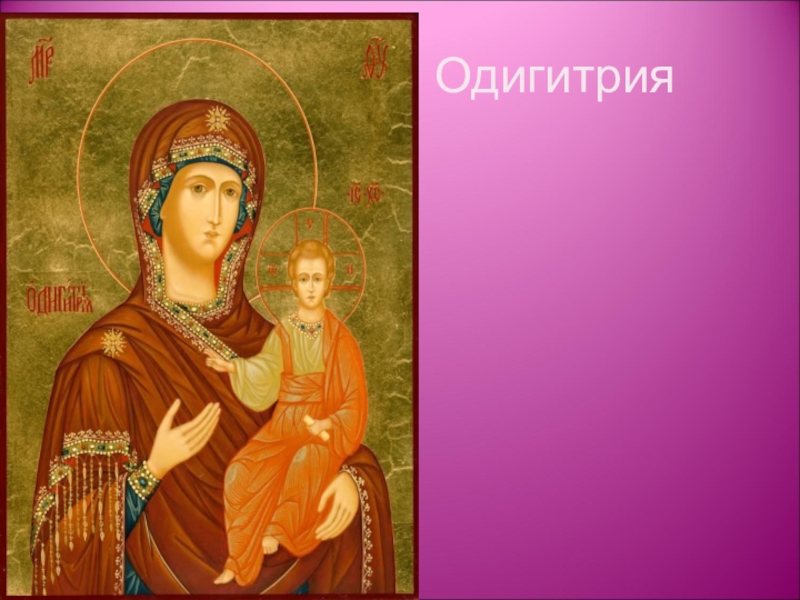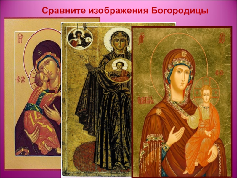 Слайд 15Для примера можно сравнить любую, написанную по канонам, икону Божией Матери