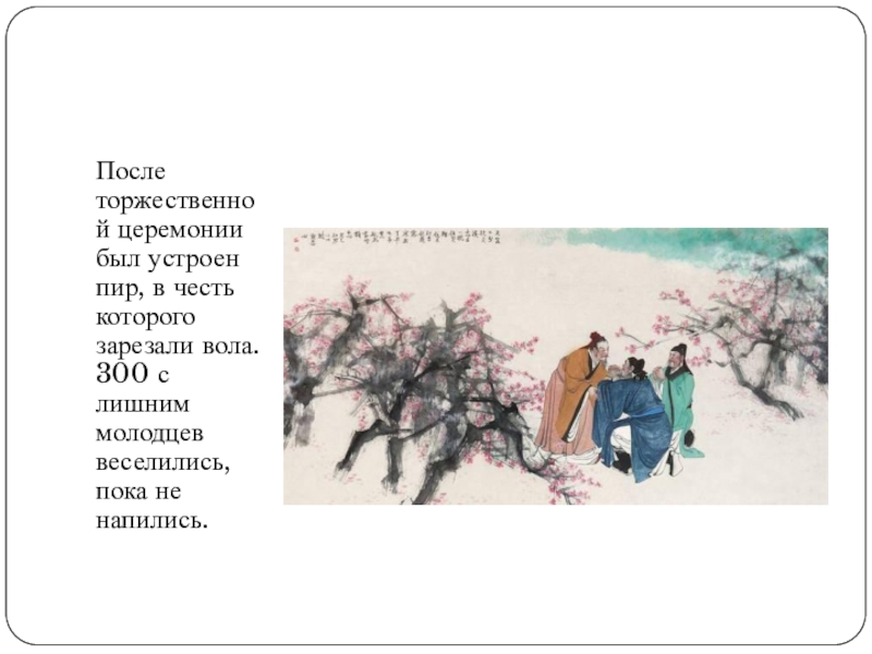 Слайд 24После торжественной церемонии был устроен пир, в честь которого зарезали вола.
