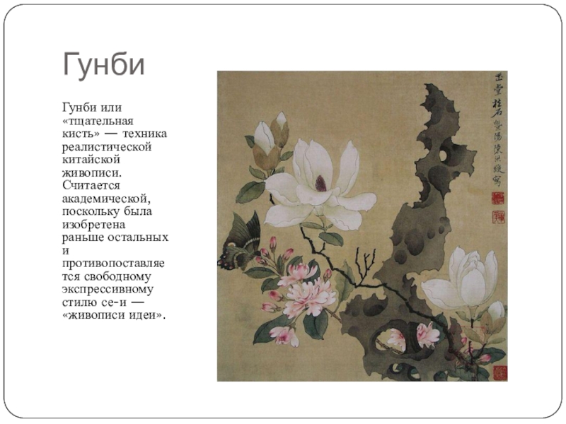 Гунби или «тщательная кисть» — техника реалистической китайской живописи. Считается академической,