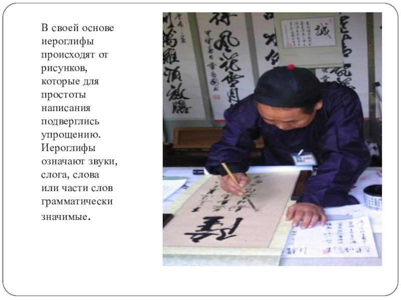 Слайд 3В своей основе иероглифы происходят от рисунков, которые для простоты написания
