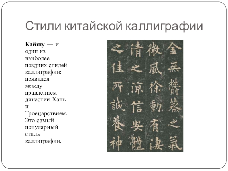 Кайшу — и один из наиболее поздних стилей каллиграфии: появился