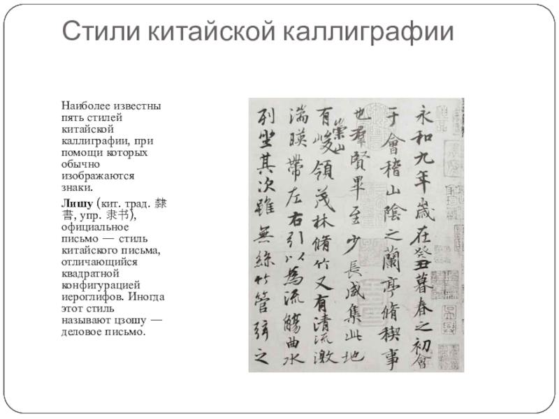 между правлением династии Хань и Троецарствием. Это самый популярный стиль каллиграфии.
