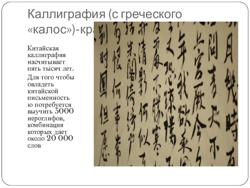 Слайд 2Каллиграфия (с греческого «калос»)-красота