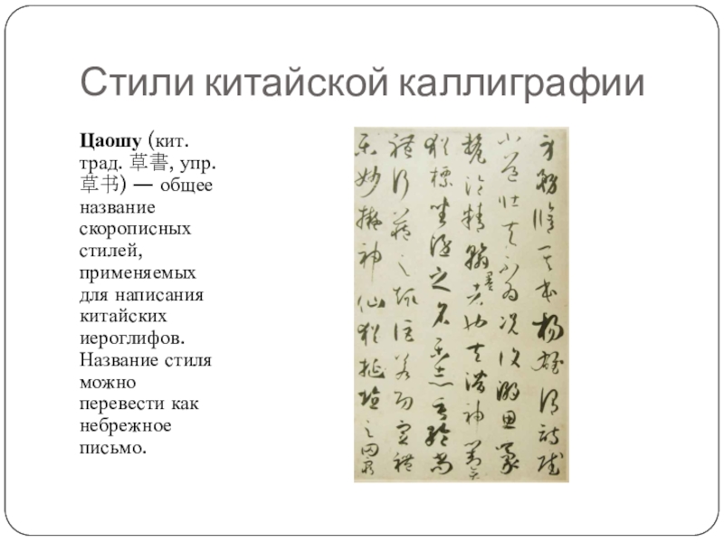 стилей, применяемых для написания китайских иероглифов. Название стиля можно перевести как небрежное письмо.