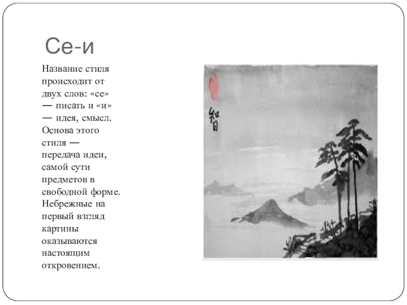 Название стиля происходит от двух слов: «се» — писать и «и»