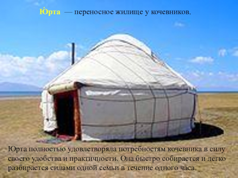 Слайд 11Ю́рта — переносное жилище у кочевников.