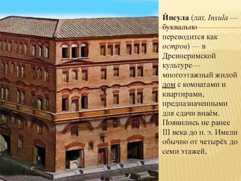 Слайд 6И́нсула (лат. Insula — буквально переводится как остров) — в Древнеримской культуре—