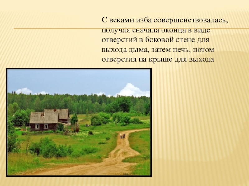 Слайд 4С веками изба совершенствовалась, получая сначала оконца в виде отверстий в