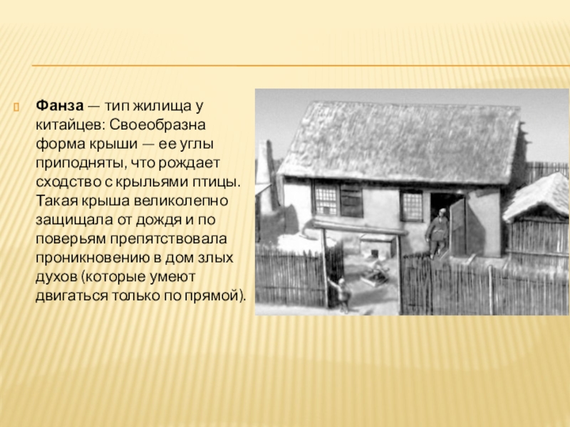Слайд 16Фанза — тип жилища у китайцев: Своеобразна форма крыши — ее