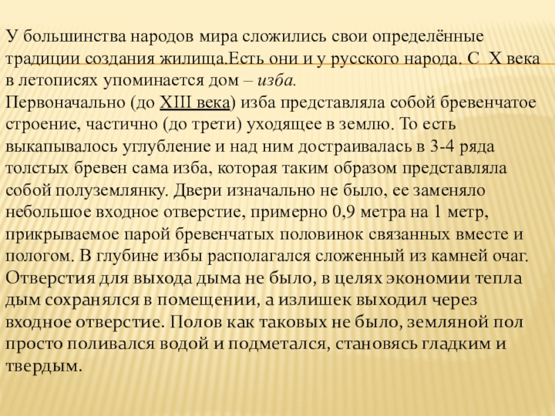 и у русского народа. С X века в летописях упоминается дом – изба.