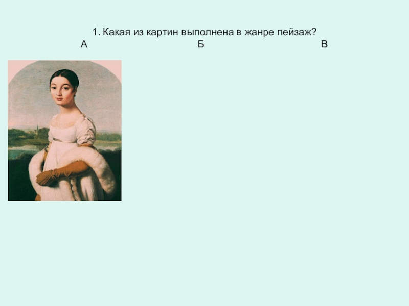 1. Какая из картин выполнена в жанре пейзаж?  А