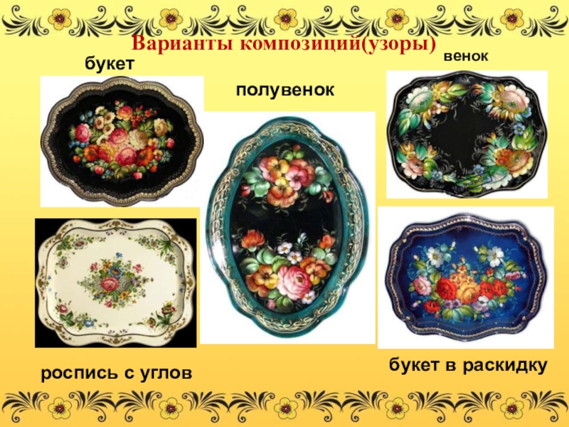 венок Варианты композиций(узоры)букет полувенок букет в раскидкуроспись с углов