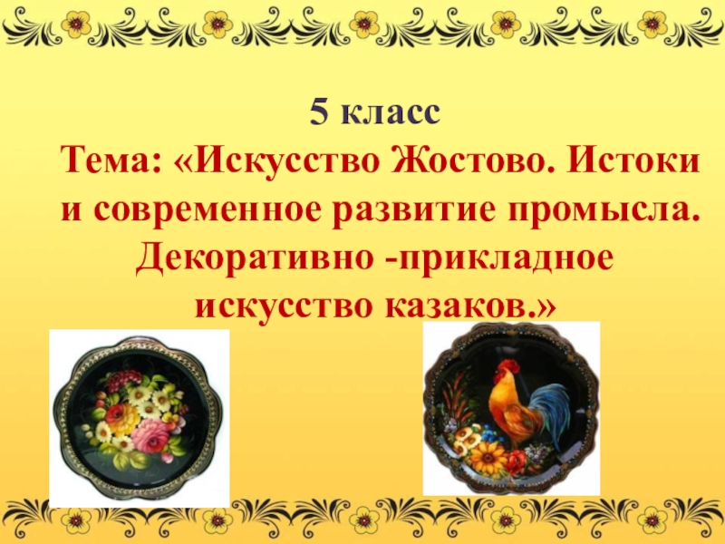 5 класс  Тема: «Искусство Жостово. Истоки и современное развитие промысла. Декоративно -прикладное искусство казаков.»