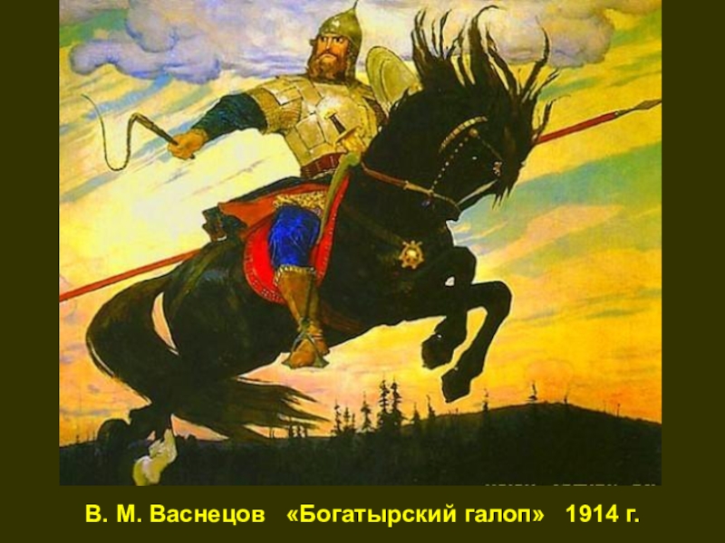 Слайд 9В. М. Васнецов «Богатырский галоп» 1914 г.