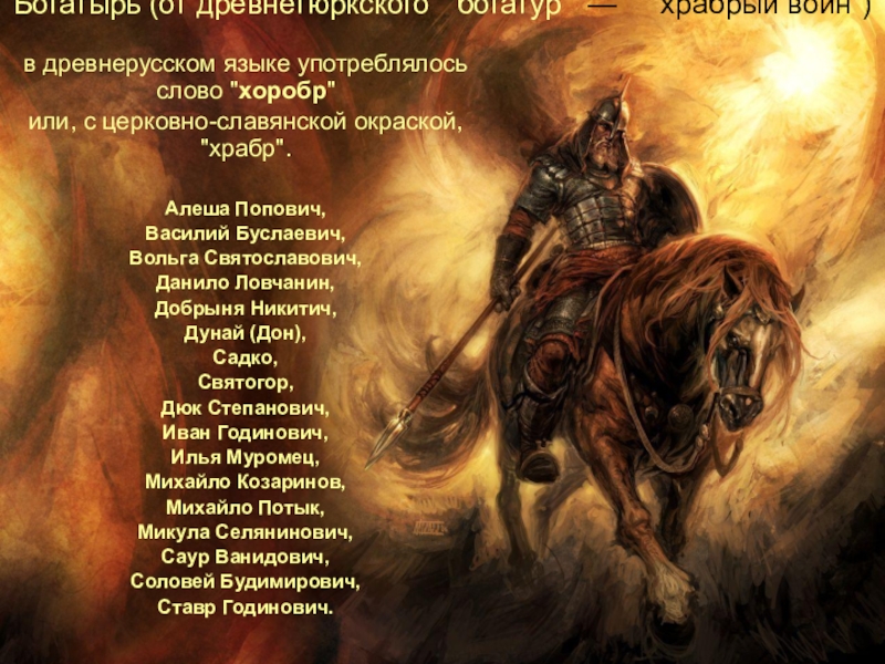 Слайд 3Богатырь (от древнетюркского " богатур " — "храбрый воин")