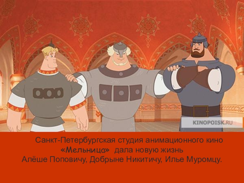 Слайд 24 Санкт-Петербургская студия анимационного кино «Мельница» дала новую жизнь Алёше Поповичу,